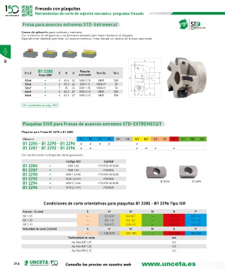 Condiciones de corte orientativas para plaquitas B1 2285 - B1 2296 Tipo ISR