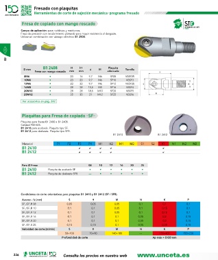 Condiciones de corte orientativas para plaquitas B1 2410 y B1 2412 (SF / SFR).