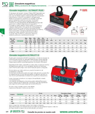rendimiento para levantar con seguridad chapas ferrosas y barras redondas,